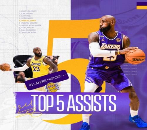 • 1. 詹姆斯湖人生涯已經(jīng)送出3667次助攻,超庫(kù)珀躋身隊(duì)史第五位;