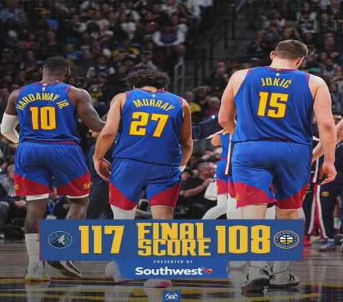 今天他們108-117不敵森林狼,遭遇兩連敗,下滑至西部第五。