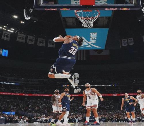 掘金的防守核心邏輯是約基奇蹲守禁區(qū)+外圍單兵圍剿。戈登是這個(gè)體系中唯一能從1號(hào)位防到5號(hào)位的球員。