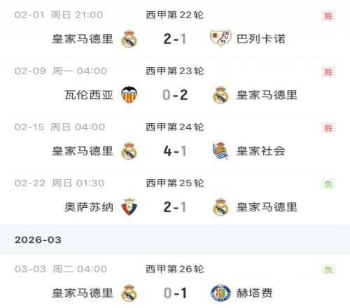 體育播報03月03日宣 西甲第26輪,皇馬0-1不敵赫塔費遭遇兩連敗,落后巴薩4分。
