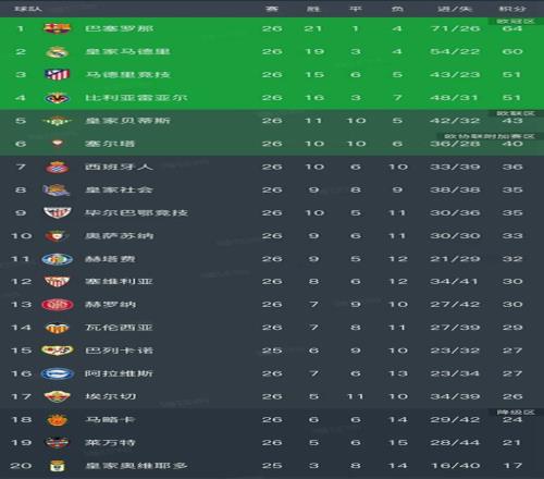 隨著皇馬01不敵赫塔費(fèi),西甲最新排名出爐!巴薩領(lǐng)先4分排第1