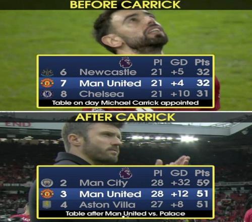 但同樣值得注意的是,維拉、布倫特福德和埃弗頓今年都在圣詹姆斯帶走了3分,卡里克自然也有信心可以帶隊(duì)實(shí)現(xiàn)。在1月14日之前,紐卡斯?fàn)柕呐琶歼€高于曼聯(lián),但卡里克上任后7戰(zhàn)6勝1平后,曼聯(lián)反超了15分!