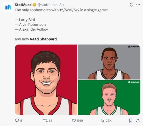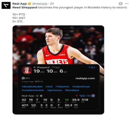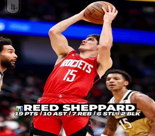 6.謝潑德是火箭隊(duì)史最年輕的10+10+5搶斷的球員。