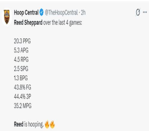 此役后謝潑德最近四場(chǎng)比賽,場(chǎng)均35.2分鐘,拿到20.3分5.3助攻4.5籃板2.5搶斷1.3蓋帽,三分命中率44.4%,他本賽季先發(fā)的9場(chǎng)比賽火箭7勝2負(fù)。