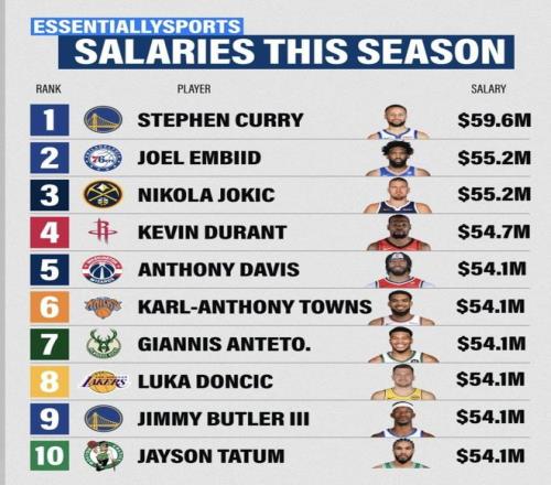 NBA本賽季球員年薪榜發(fā)布!庫里第一4.12億元!詹姆斯跌出前十