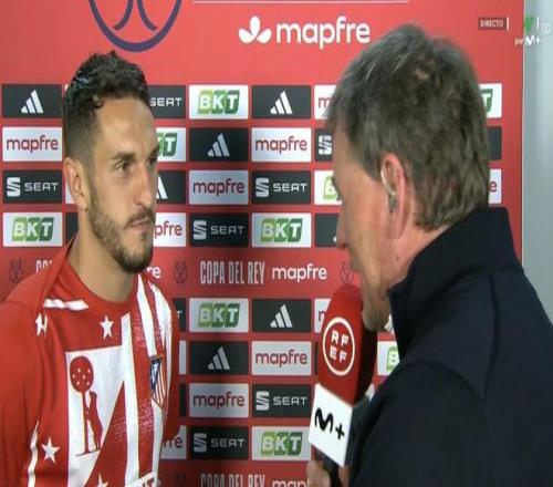 盡管在諾坎普0-3落敗,但馬競?cè)砸钥偙确?-3淘汰巴薩晉級國王杯決賽。隊長科克賽后接受了RTVE的采訪,他盛贊了對手佩德里,同時也表達了對冠軍的渴望。