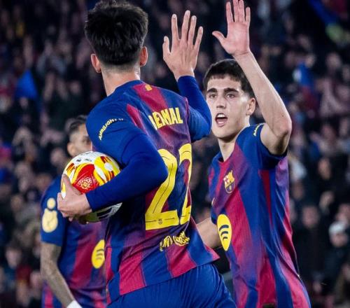 比賽開始后,巴薩全隊(duì)壓上狂攻,很快貝爾納爾就包抄破門,為球隊(duì)打破僵局。半場(chǎng)結(jié)束前,佩德里在禁區(qū)內(nèi)被絆倒在地,巴薩贏得點(diǎn)球,拉菲尼亞主罰破門,主隊(duì)2-0領(lǐng)先,巴薩看到了翻盤的希望。