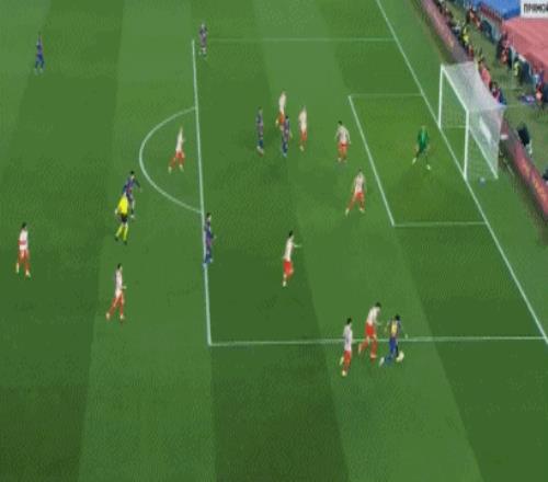 第29分鐘,費爾明開出戰(zhàn)術(shù)角球,亞馬爾瀟灑突破傳中,貝爾納爾門前吃餅,巴薩打破僵局,1-0!