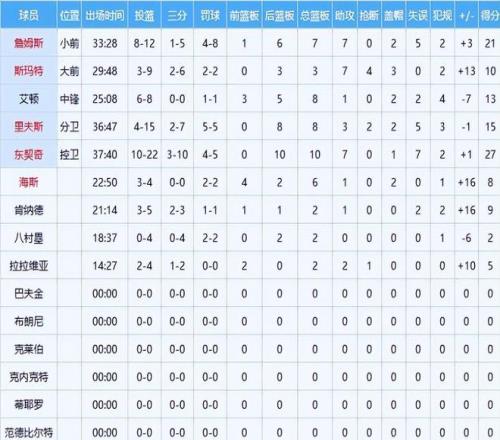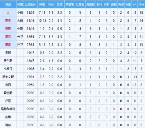 賽后技術(shù)統(tǒng)計清晰勾勒出全隊輪廓:湖人共有5人得分上雙,整體攻防分布相對均衡,但核心球員之間的能量層級差異極為顯著。