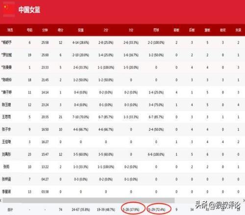 另外一個(gè)指標(biāo)則是三分球投籃命中率,中國(guó)女籃全隊(duì)交出了28投5中,巴西女籃則是30投9中,從超過1個(gè)月的集訓(xùn),以及主場(chǎng)作戰(zhàn)的層面,這個(gè)投籃命中率肯定是偏低,甚至還不如巴西女籃。而19個(gè)失誤想要在正規(guī)FIBA比賽贏球,同樣難度極大。