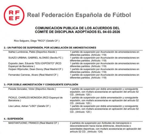 西甲官方消息,皇馬球員馬斯坦托諾因辱罵裁判被罰停賽2場,赫伊森、卡雷拉斯因累計黃牌停賽1場。這對于皇馬來說無疑是巨大的打擊,球隊本身就傷兵滿營,如今又有3名球員被禁賽,他們在下一場比賽對陣塞爾塔的比賽當中甚至可能會有10名球員缺陣,阿韋洛亞對此也非常無奈。如果繼續(xù)輸球的話,他們將會在積分榜被巴薩擴大領(lǐng)先優(yōu)勢,基本可以宣告提前退出冠軍爭奪。