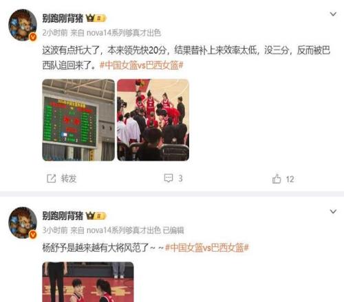 作者認(rèn)為,本來(lái)中國(guó)女籃已經(jīng)領(lǐng)先了快20分,結(jié)果替補(bǔ)上來(lái)由于得分效率太低沒(méi)有三分,反而被巴西女籃追了回來(lái)。這是末節(jié)場(chǎng)上局勢(shì)的轉(zhuǎn)折點(diǎn),宮魯鳴作為主教練有兩大失誤。