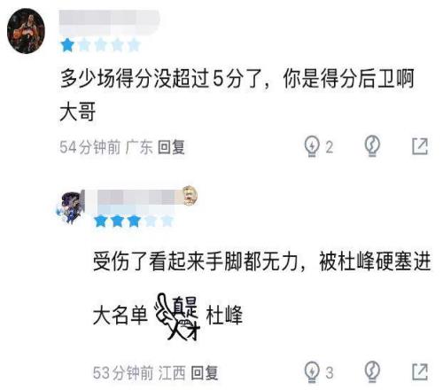 明眼人都能看出來,胡明軒現(xiàn)在的狀態(tài)非常低迷,可杜鋒仍然不信邪,就像此前對于張皓嘉的執(zhí)拗那樣。這場比賽,杜鋒真就死活不把胡明軒換下,球迷也熱議道:“不知道杜鋒為什么還上你?看得出來雙腳都虛浮沒力了,連賈明儒都防不住了,第一階段就應(yīng)該好好養(yǎng)傷,非得被迫上班,打得差又背鍋?!?/p>