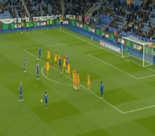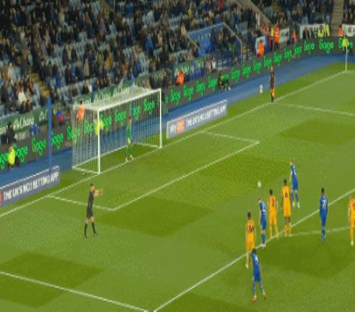 第36分鐘,萊斯特城前場任意球,穆卡薩射門打高